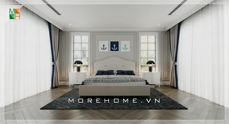 Ánh sáng thiết kế với khoảng trắng tối đa giúp không gian phòng ngủ luôn được thông thoáng.